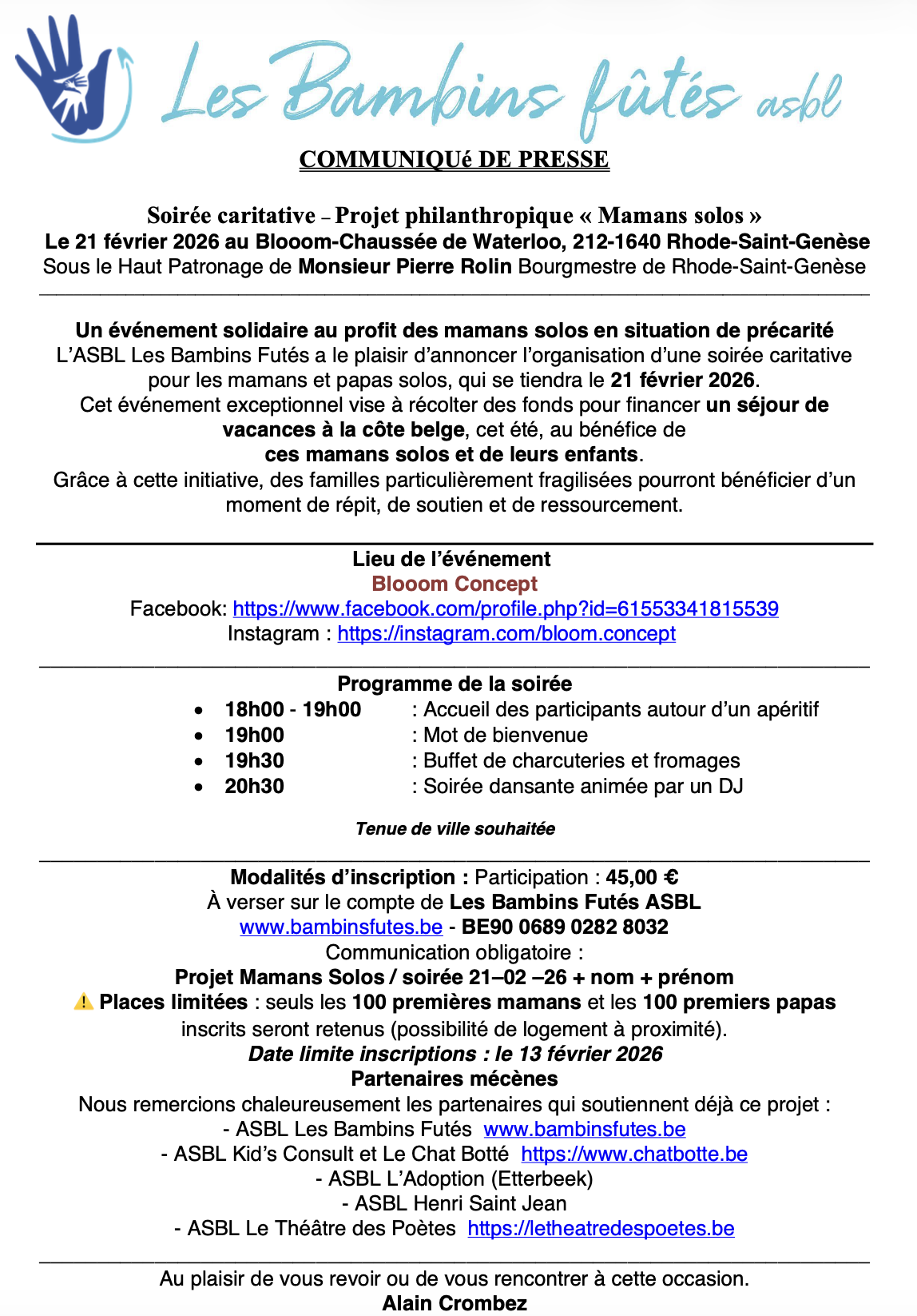 Projet philanthropique « Mamans Solos » : le 21 février 2026